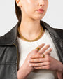 The Sarah Chained Necklace consistently ranks among our top sellers at pop-up events. Its distinctive design introduces a playful yet sophisticated element to any ensemble, ideal for individuals who confidently blend boldness with subtle charm. This necklace is a refined choice for elevating your accessory collection with a touch of personality.